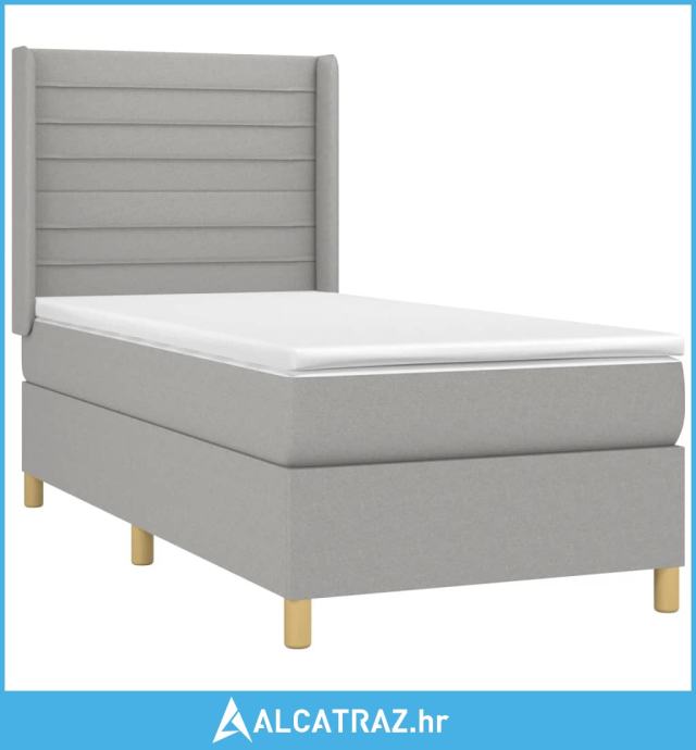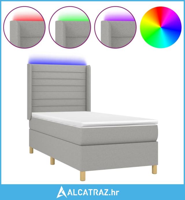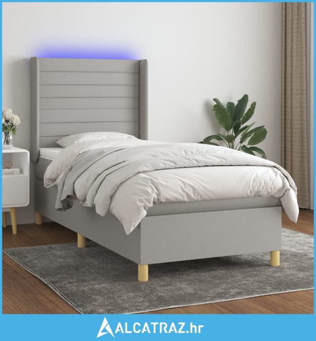 Krevet box spring s madracem LED svjetlosivi 90x190 cm tkanina - NOVO