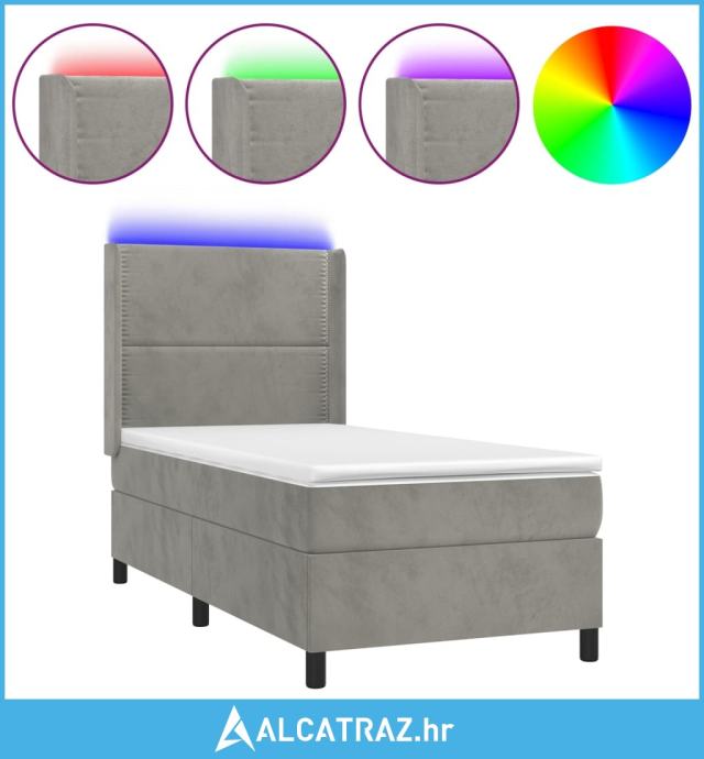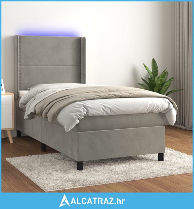 Krevet box spring s madracem LED svjetlosivi 90x200 cm baršun - NOVO