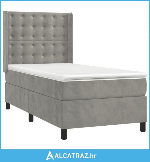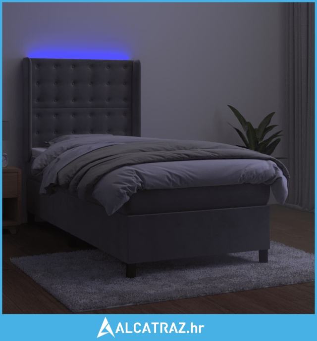 Krevet box spring s madracem LED svjetlosivi 90x200 cm baršun - NOVO