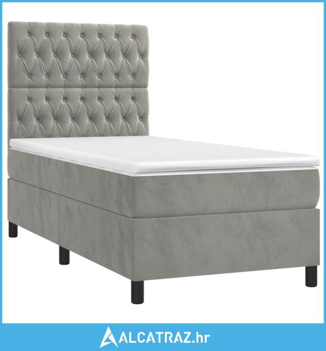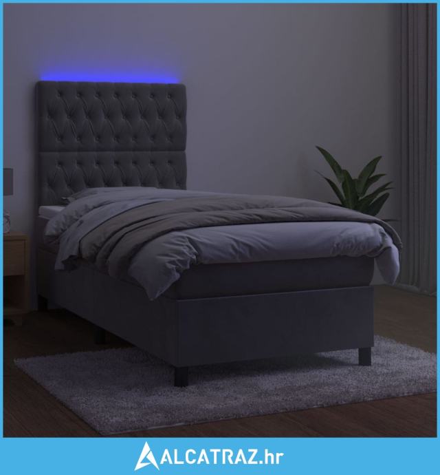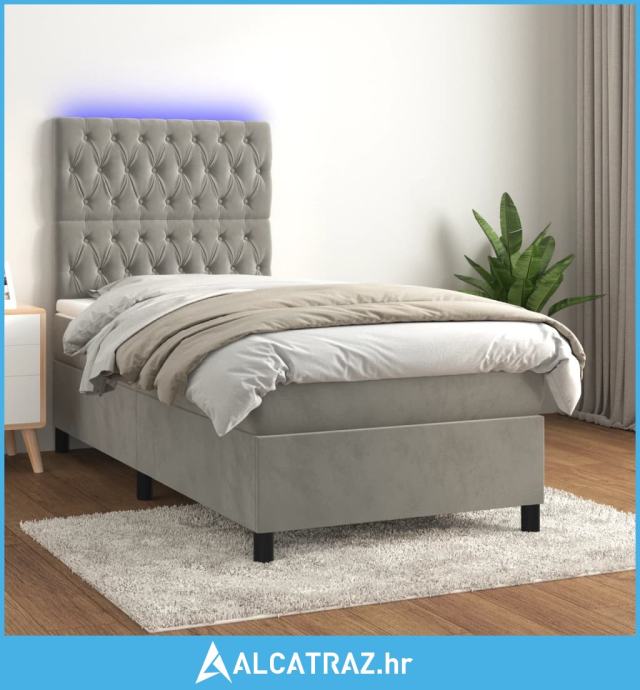 Krevet box spring s madracem LED svjetlosivi 90x200 cm baršun - NOVO
