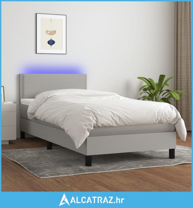Krevet box spring s madracem LED svjetlosivi 90x200 cm tkanina - NOVO