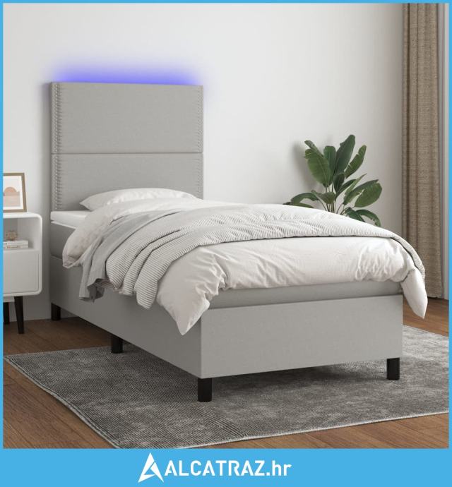 Krevet box spring s madracem LED svjetlosivi 90x200 cm tkanina - NOVO