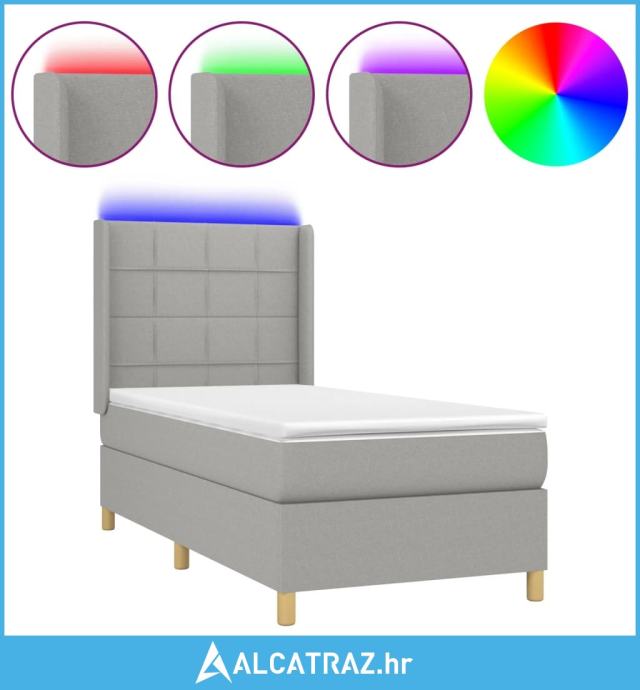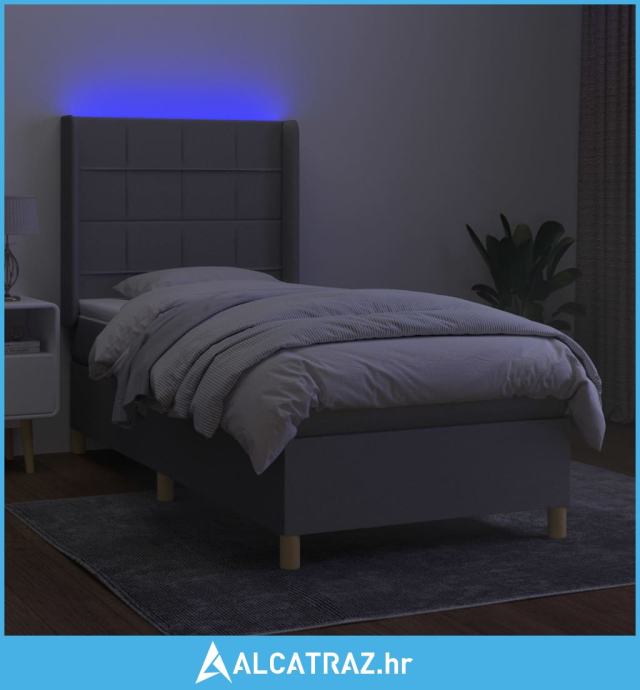 Krevet box spring s madracem LED svjetlosivi 90x200 cm tkanina - NOVO