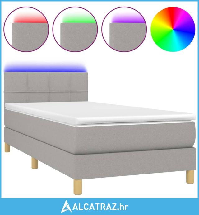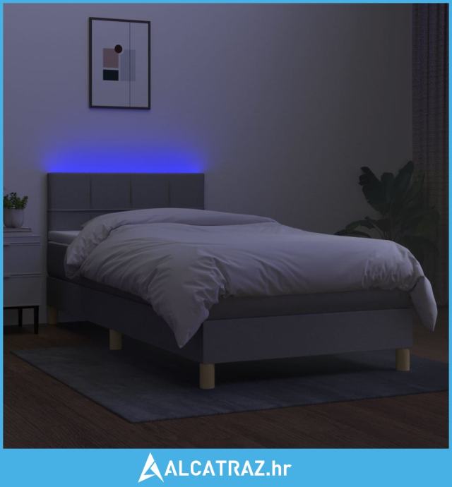 Krevet box spring s madracem LED svjetlosivi 90x200 cm tkanina - NOVO