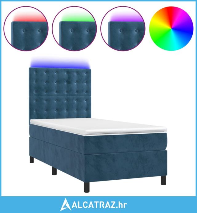 Krevet box spring s madracem LED tamnoplavi 100x200 cm baršun - NOVO