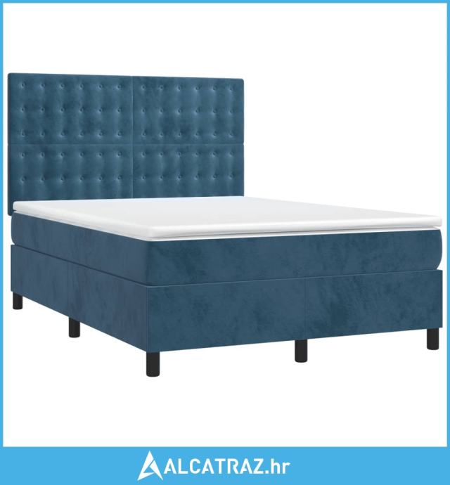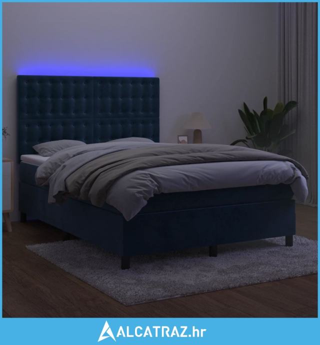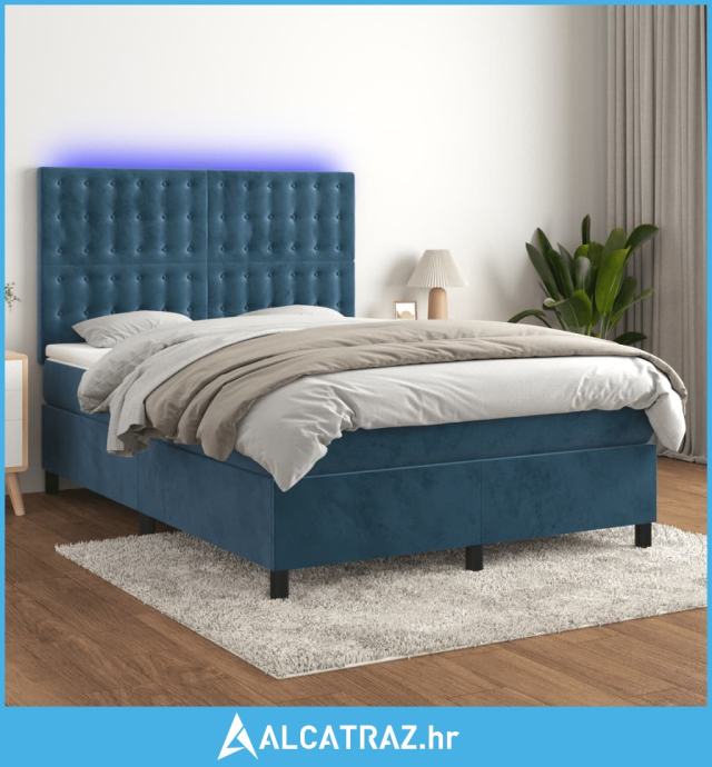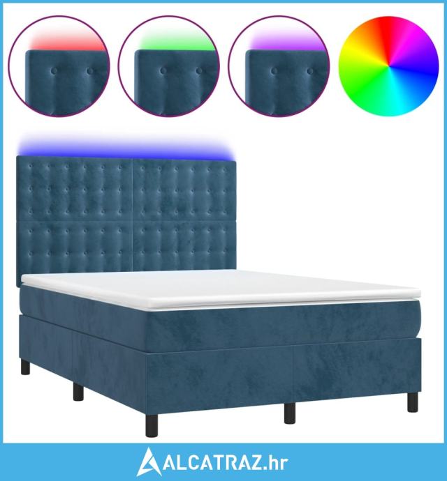 Krevet box spring s madracem LED tamnoplavi 140x190 cm baršun - NOVO