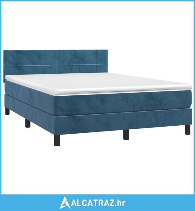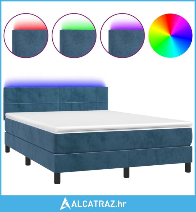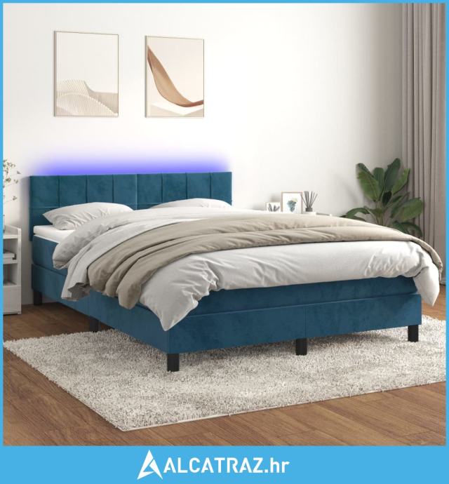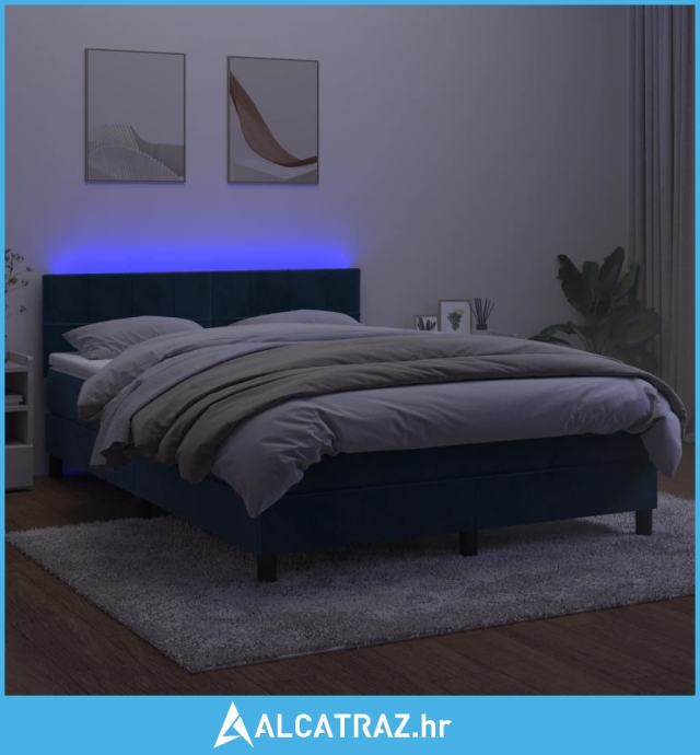 Krevet box spring s madracem LED tamnoplavi 140x200 cm baršun - NOVO