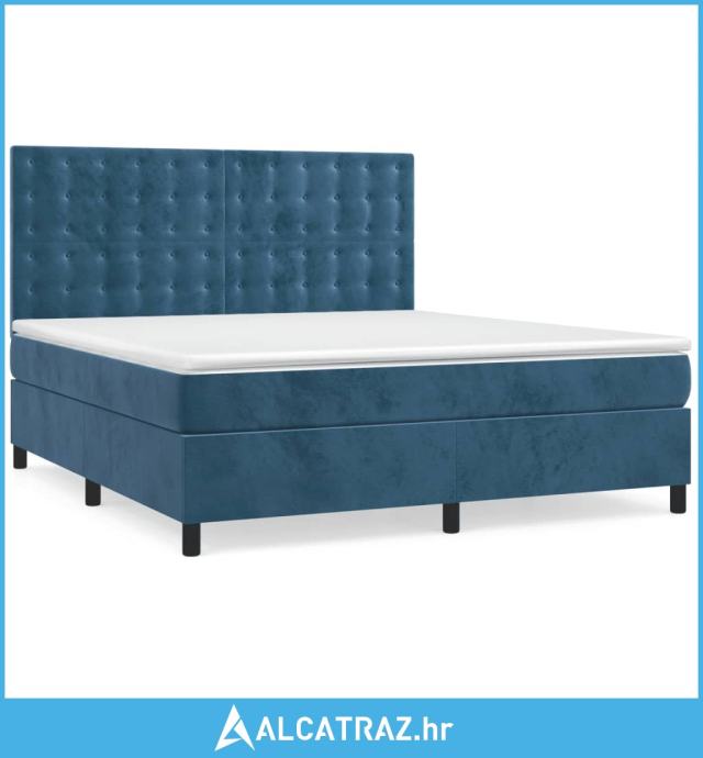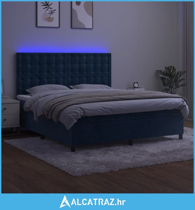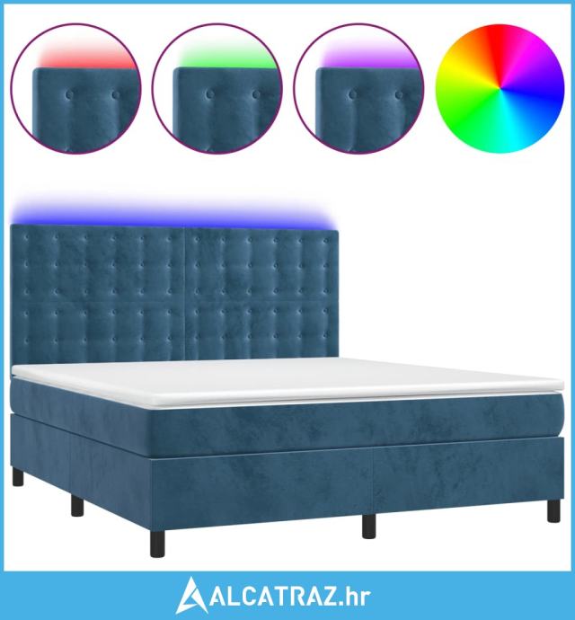 Krevet box spring s madracem LED tamnoplavi 160x200 cm baršun - NOVO