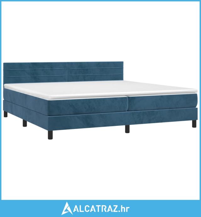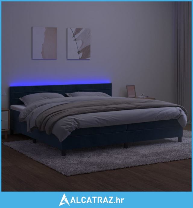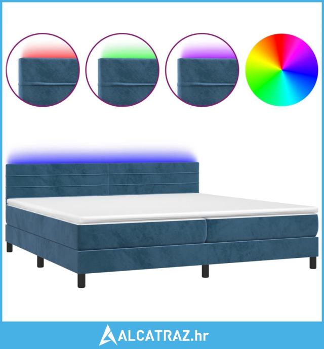 Krevet box spring s madracem LED tamnoplavi 200x200 cm baršun - NOVO