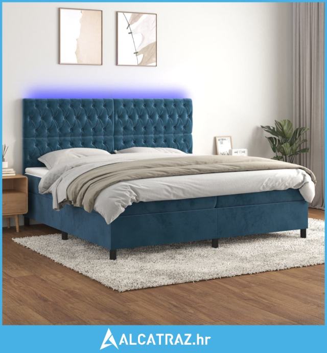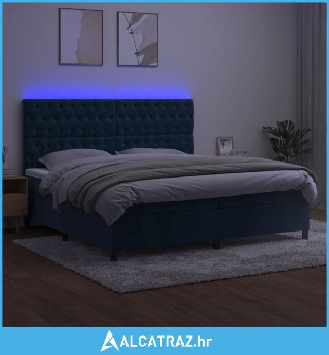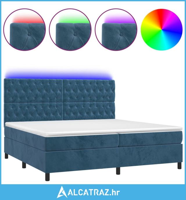 Krevet box spring s madracem LED tamnoplavi 200x200 cm baršun - NOVO