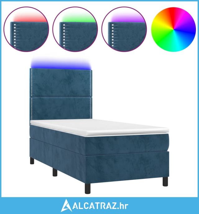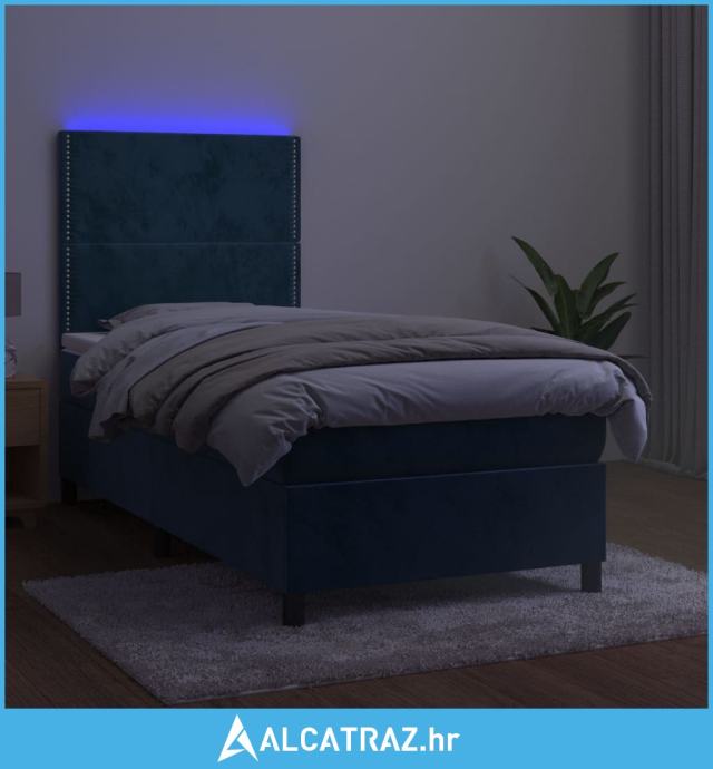 Krevet box spring s madracem LED tamnoplavi 90x190 cm baršun - NOVO