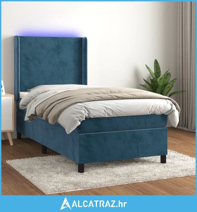 Krevet box spring s madracem LED tamnoplavi 90x190 cm baršun - NOVO