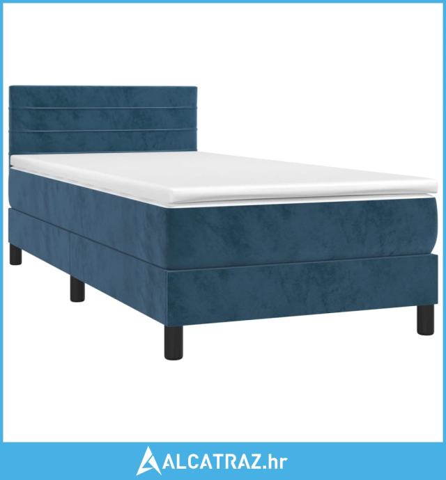 Krevet box spring s madracem LED tamnoplavi 90x200 cm baršun - NOVO
