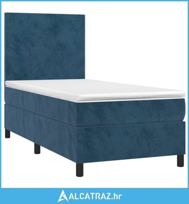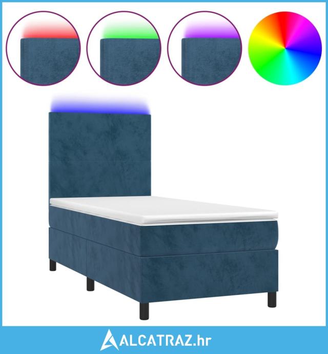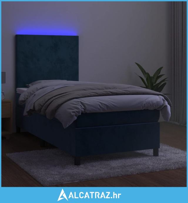 Krevet box spring s madracem LED tamnoplavi 90x200 cm baršun - NOVO