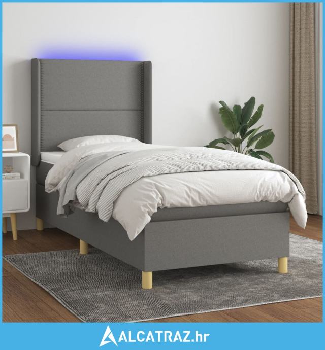Krevet box spring s madracem LED tamnosivi 100x200 cm tkanina - NOVO