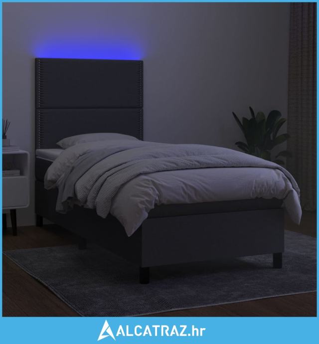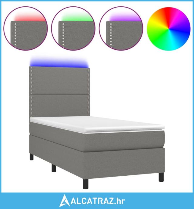 Krevet box spring s madracem LED tamnosivi 100x200 cm tkanina - NOVO