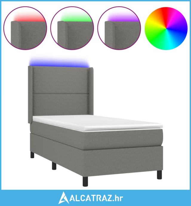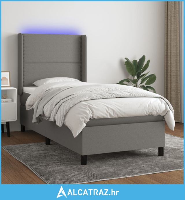 Krevet box spring s madracem LED tamnosivi 100x200 cm tkanina - NOVO