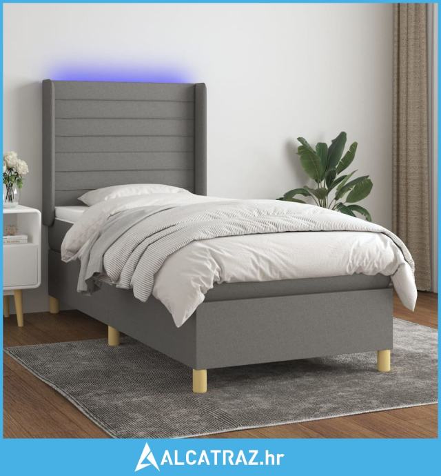 Krevet box spring s madracem LED tamnosivi 100x200 cm tkanina - NOVO