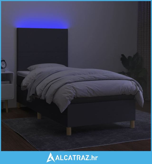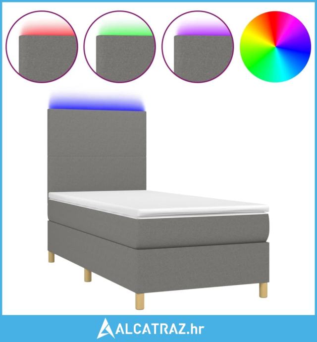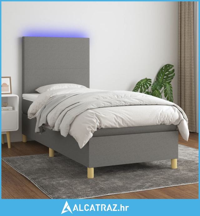 Krevet box spring s madracem LED tamnosivi 100x200 cm tkanina - NOVO
