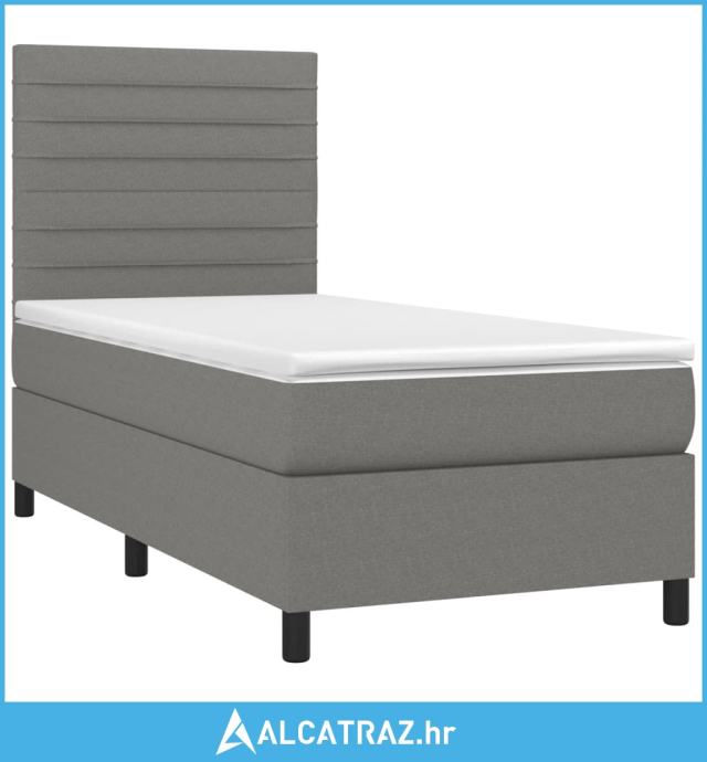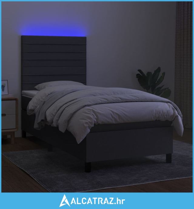 Krevet box spring s madracem LED tamnosivi 100x200 cm tkanina - NOVO