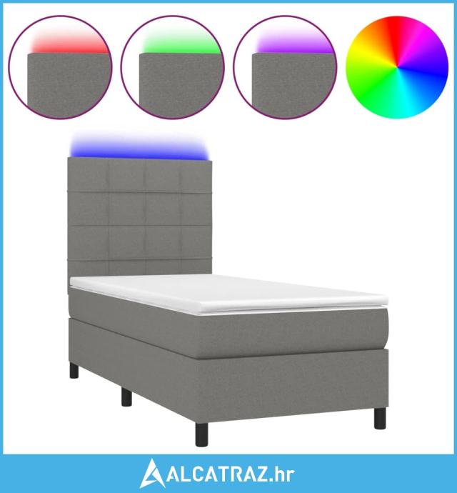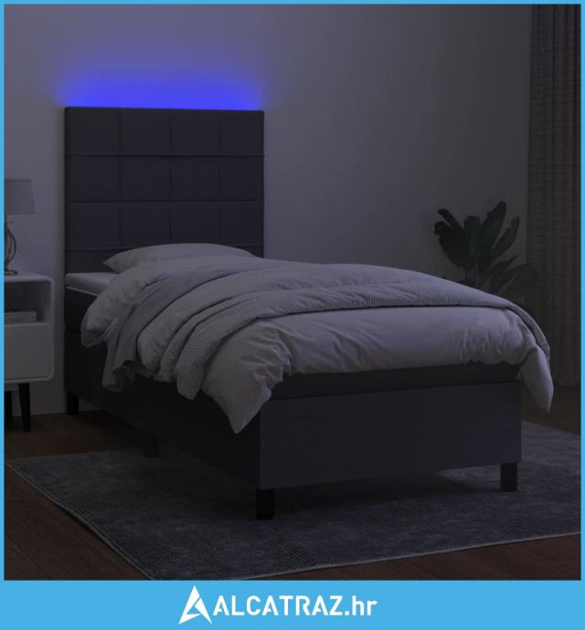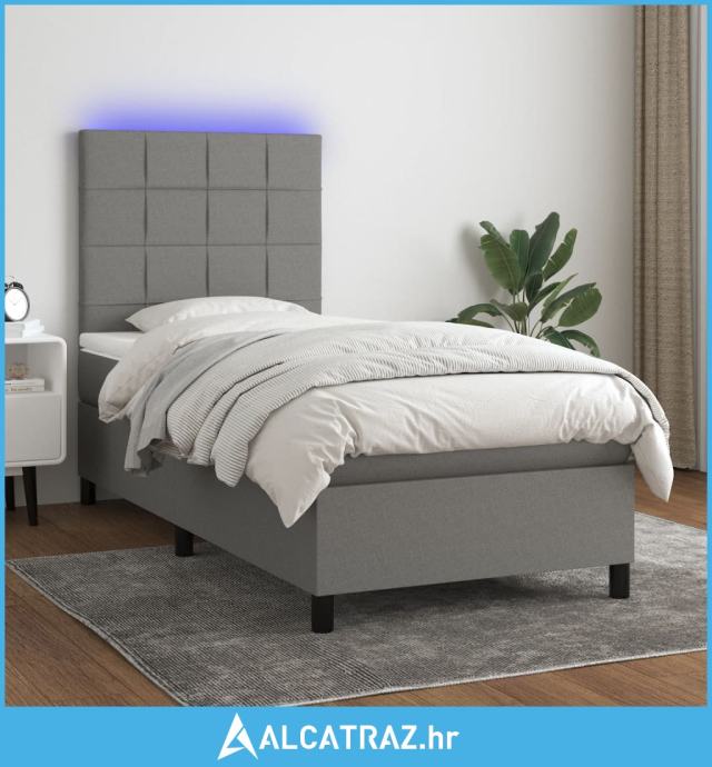 Krevet box spring s madracem LED tamnosivi 100x200 cm tkanina - NOVO