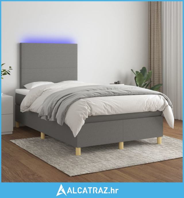 Krevet box spring s madracem LED tamnosivi 120 x 200 cm tkanina - NOVO