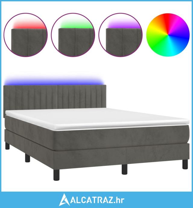 Krevet box spring s madracem LED tamnosivi 140x190 cm baršun - NOVO