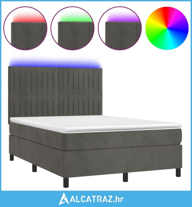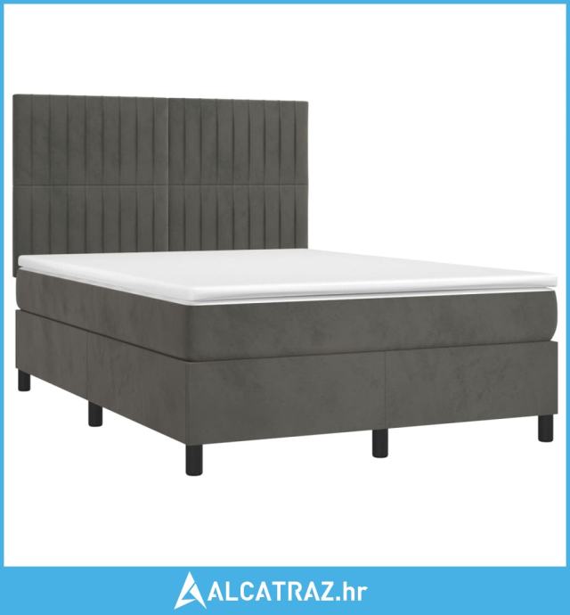 Krevet box spring s madracem LED tamnosivi 140x190 cm baršun - NOVO
