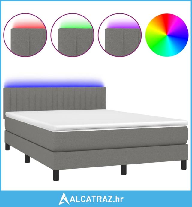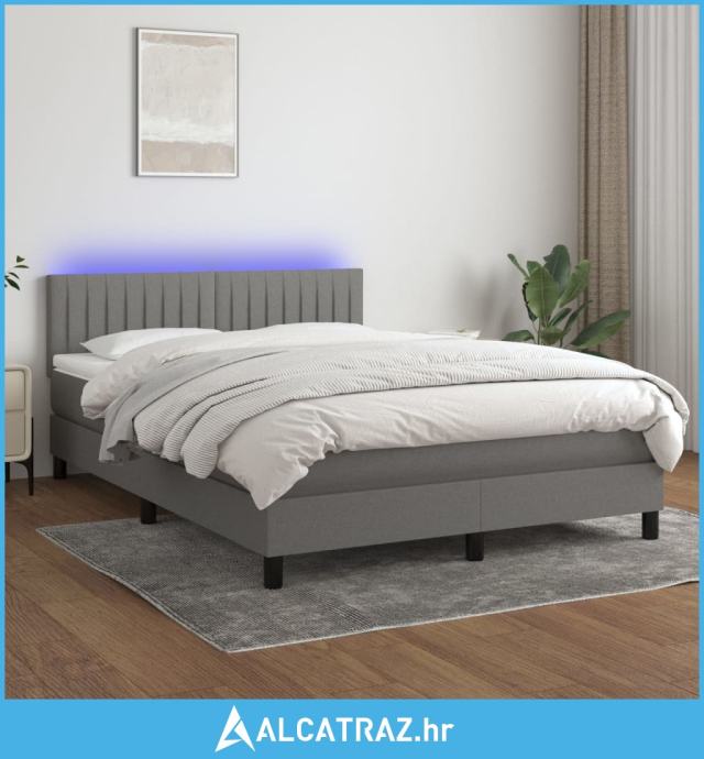 Krevet box spring s madracem LED tamnosivi 140x190 cm tkanina - NOVO