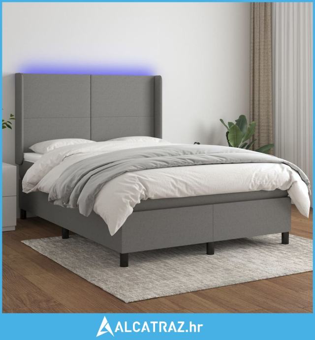 Krevet box spring s madracem LED tamnosivi 140x190cm od tkanine - NOVO