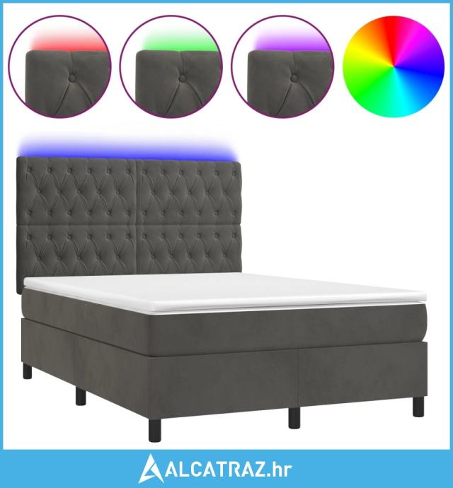 Krevet box spring s madracem LED tamnosivi 140x200 cm baršun - NOVO