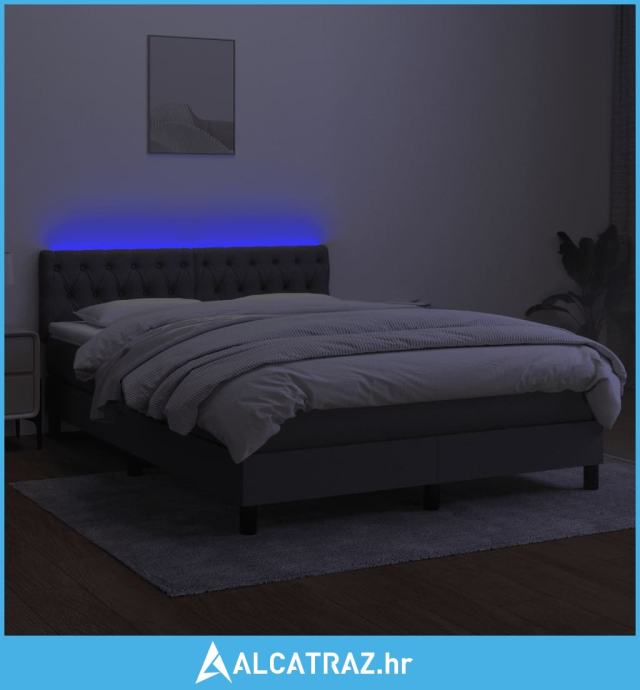 Krevet box spring s madracem LED tamnosivi 140x200 cm tkanina - NOVO