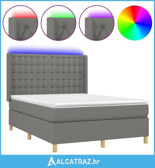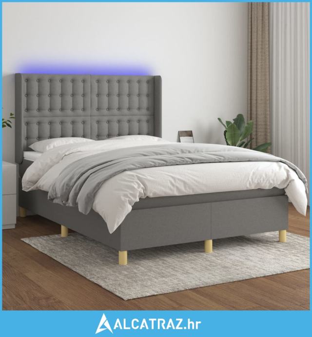 Krevet box spring s madracem LED tamnosivi 140x200 cm tkanina - NOVO