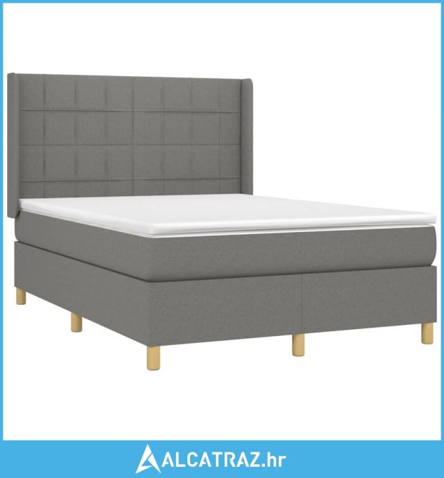 Krevet box spring s madracem LED tamnosivi 140x200 cm tkanina - NOVO