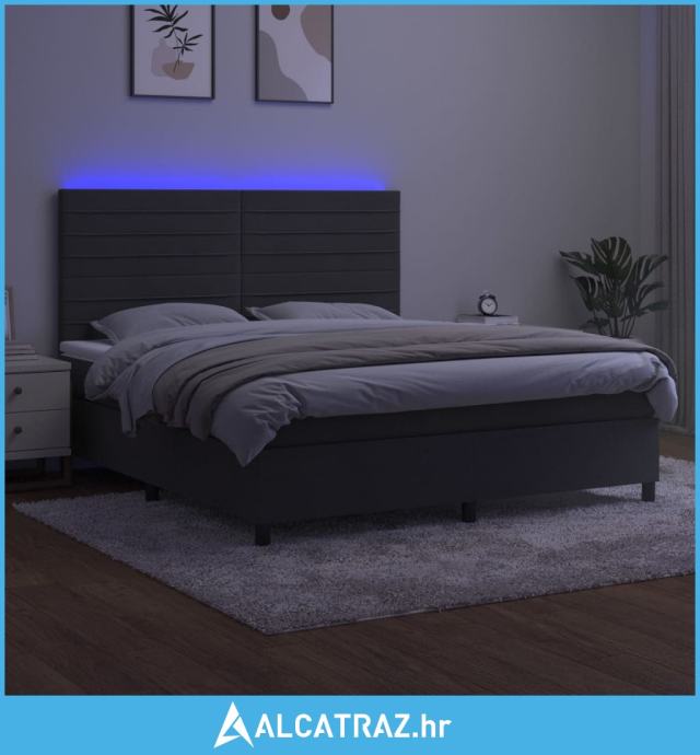 Krevet box spring s madracem LED tamnosivi 160x200 cm baršun - NOVO