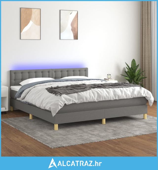 Krevet box spring s madracem LED tamnosivi 160x200 cm tkanina - NOVO