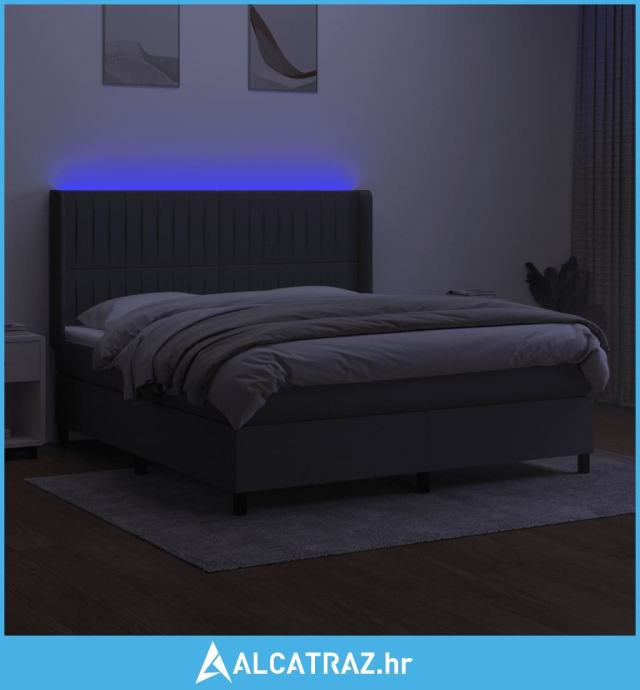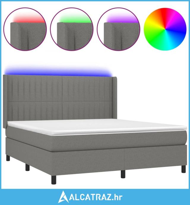 Krevet box spring s madracem LED tamnosivi 160x200 cm tkanina - NOVO