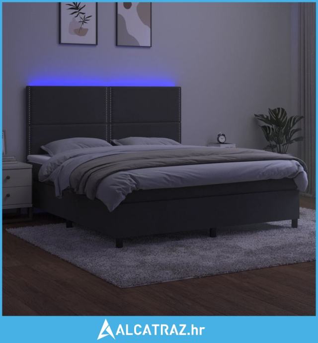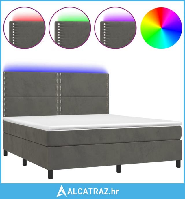 Krevet box spring s madracem LED tamnosivi 180x200 cm baršun - NOVO