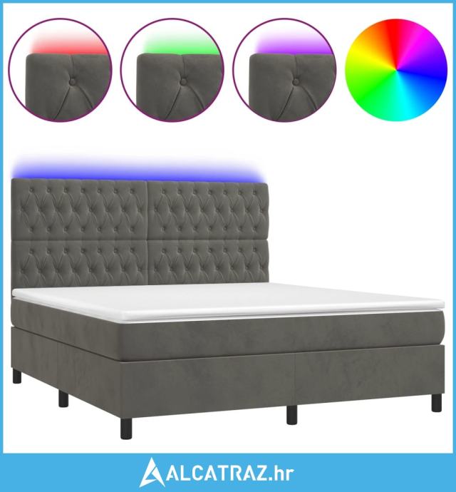 Krevet box spring s madracem LED tamnosivi 180x200 cm baršun - NOVO