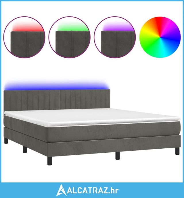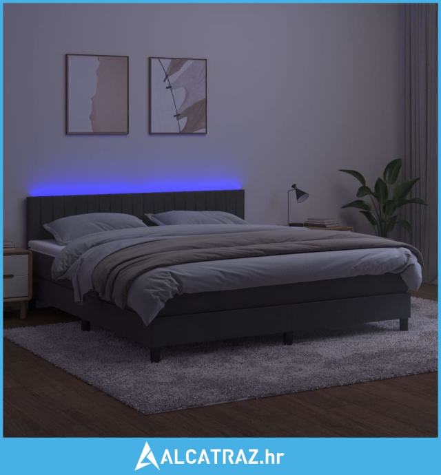 Krevet box spring s madracem LED tamnosivi 180x200 cm baršun - NOVO