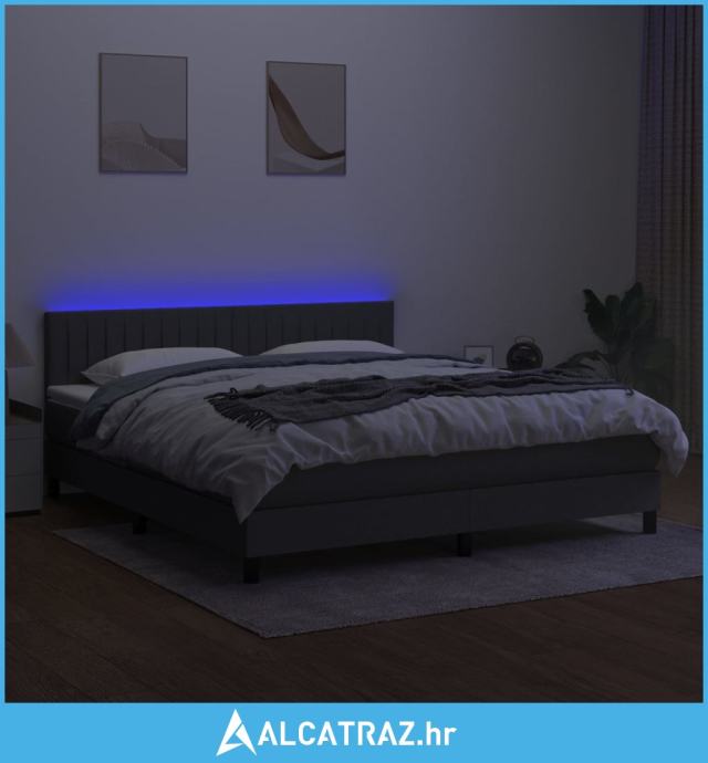 Krevet box spring s madracem LED tamnosivi 180x200 cm tkanina - NOVO