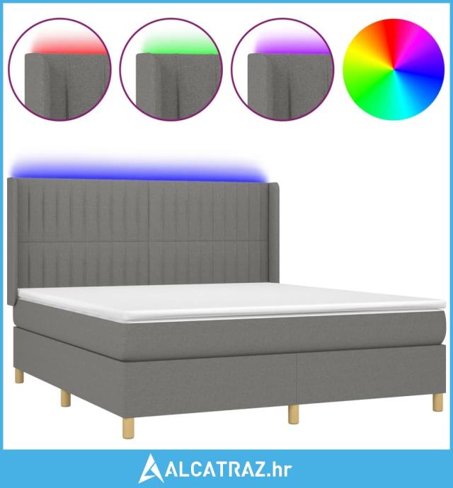 Krevet box spring s madracem LED tamnosivi 180x200 cm tkanina - NOVO