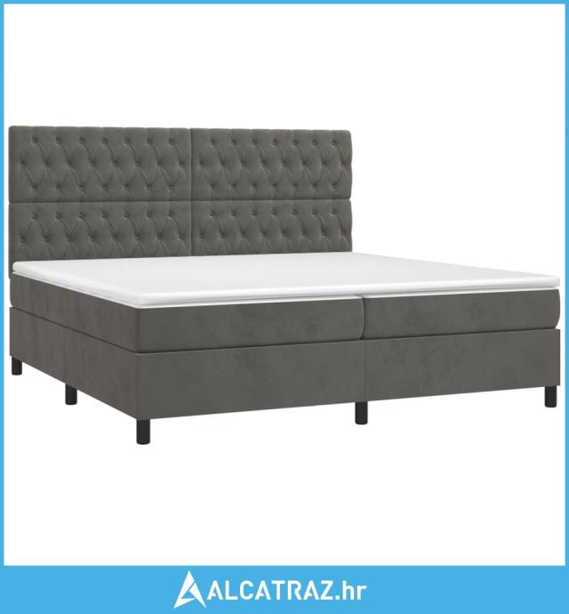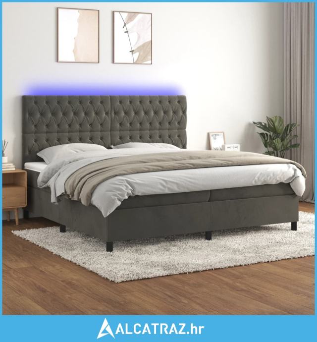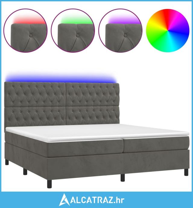 Krevet box spring s madracem LED tamnosivi 200x200 cm baršun - NOVO
