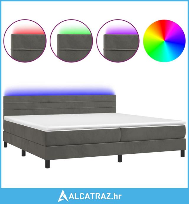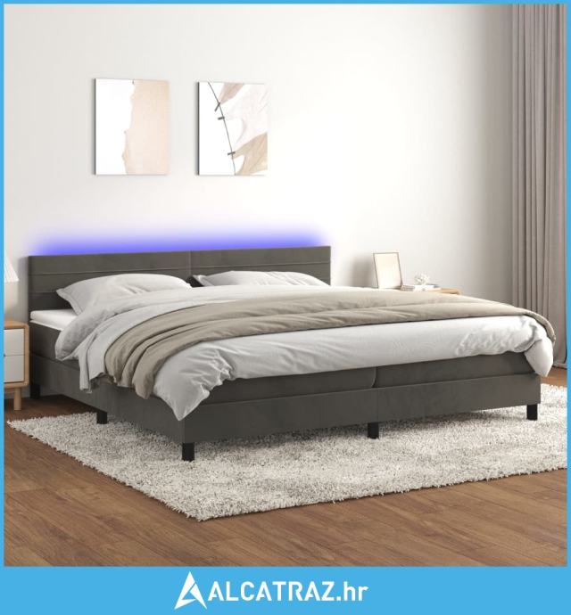Krevet box spring s madracem LED tamnosivi 200x200 cm baršun - NOVO