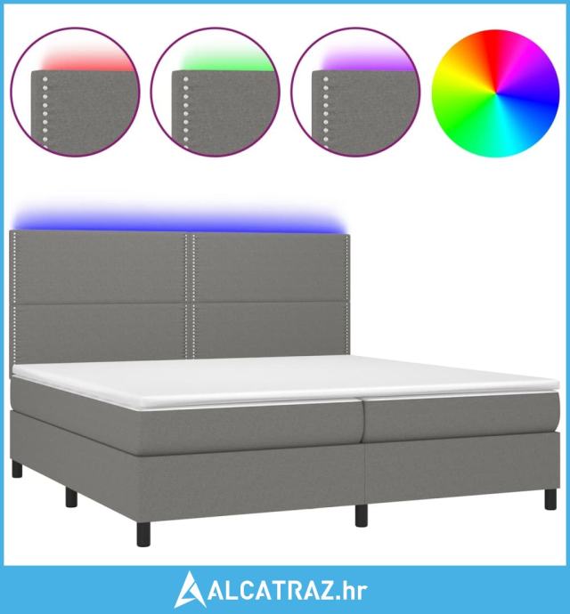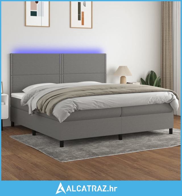 Krevet box spring s madracem LED tamnosivi 200x200 cm tkanina - NOVO