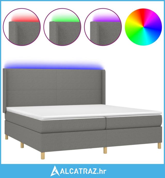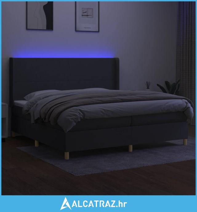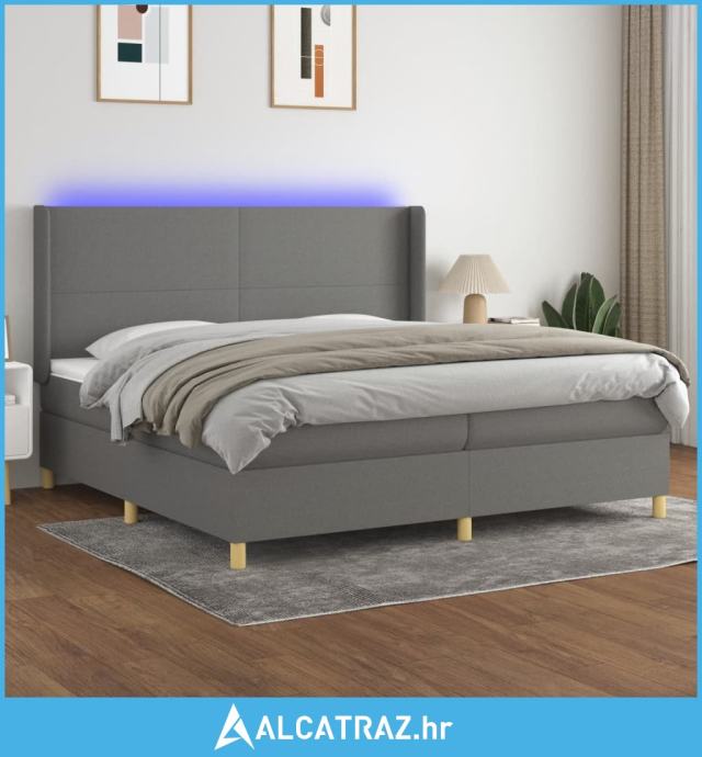 Krevet box spring s madracem LED tamnosivi 200x200 cm tkanina - NOVO