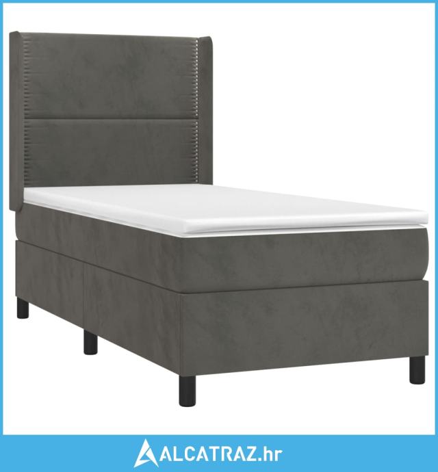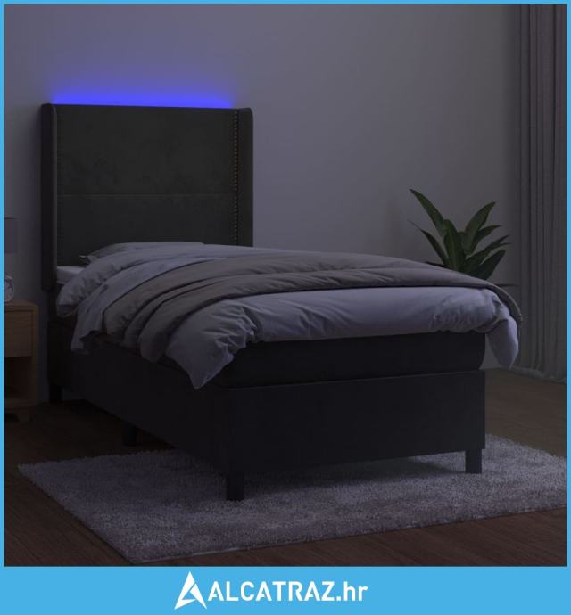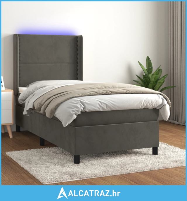 Krevet box spring s madracem LED tamnosivi 80 x 200 cm baršun - NOVO