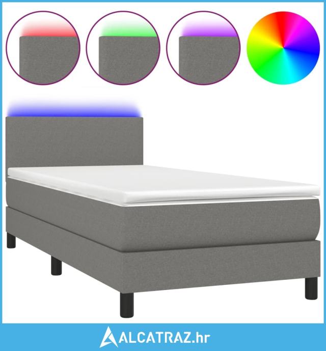 Krevet box spring s madracem LED tamnosivi 80 x 200 cm tkanina - NOVO