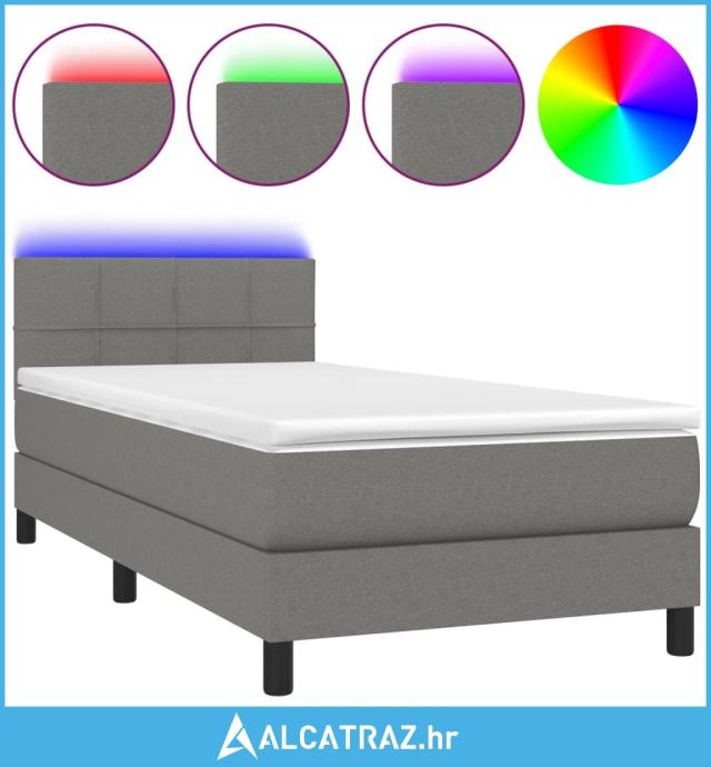 Krevet box spring s madracem LED tamnosivi 80 x 200 cm tkanina - NOVO