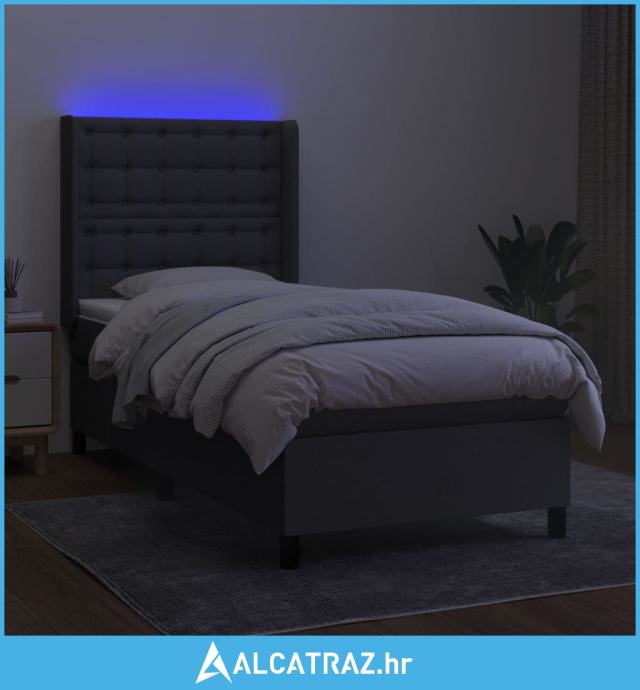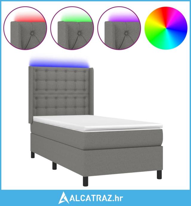 Krevet box spring s madracem LED tamnosivi 80 x 200 cm tkanina - NOVO